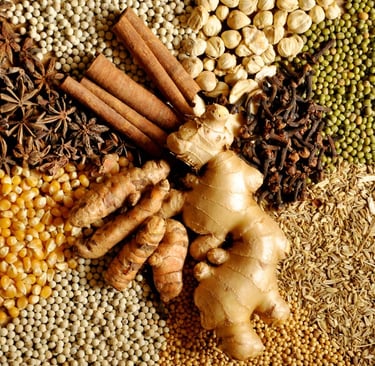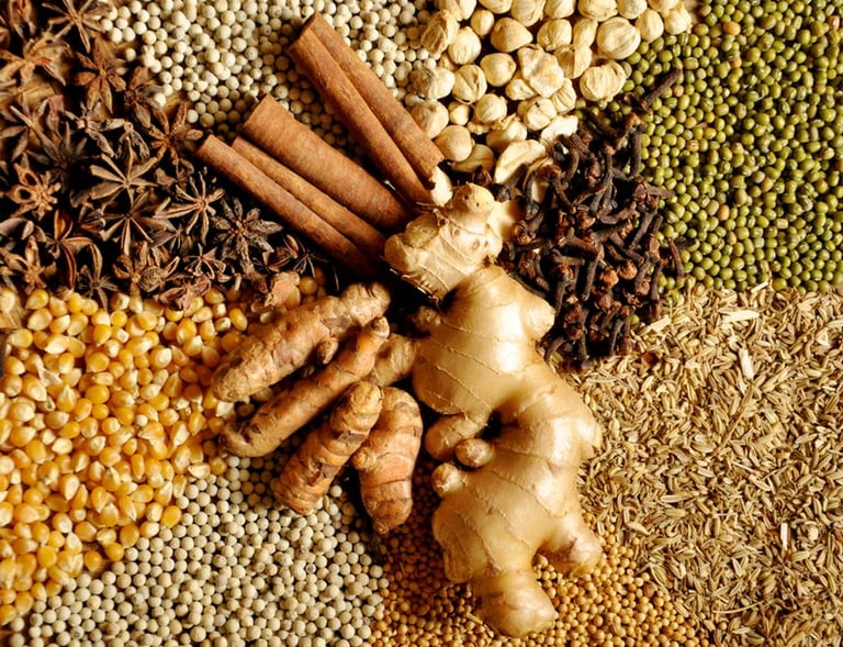 Kopra, kopi, kakao, dan rempah-rempah pilihan